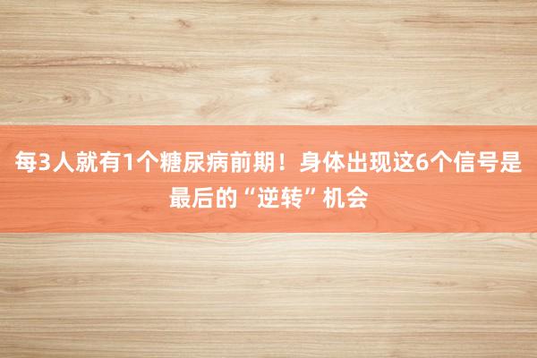 这是身体给你的最后机会,可惜大多数人却浑然不觉,直到血糖全面失控才追悔莫及。