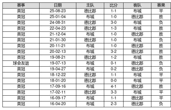 布城 VS 德比郡两队近10年的交战次数为17场,布城7胜5平5负,赢球概率为41.2%,平局概率为29.4%,输球概率为29.4%。