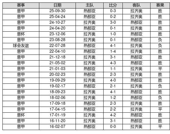 拉齐奥 VS 热那亚两队近10年的交战次数为21场,拉齐奥14胜3平4负,赢球概率为66.7%,平局概率为14.3%,输球概率为19.0%。