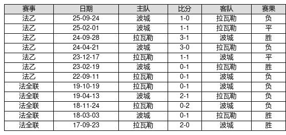 拉瓦勒 VS 波城两队近10年的交战次数为12场,拉瓦勒4胜2平6负,赢球概率为33.3%,平局概率为16.7%,输球概率为50.0%。