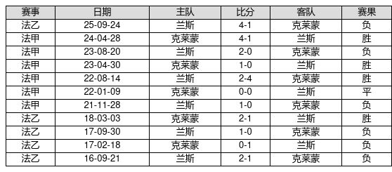 克莱蒙 VS 兰斯两队近10年的交战次数为11场,AG庄闲和游戏克莱蒙4胜1平6负,赢球概率为36.4%,平局概率为9.1%,输球概率为54.5%。