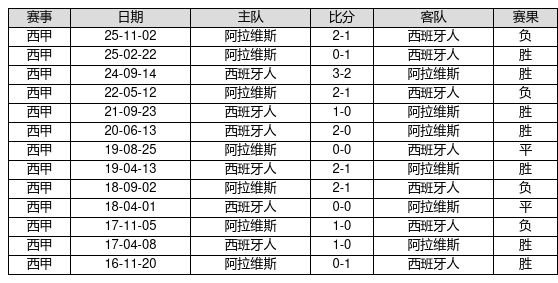 西班牙人 VS 阿拉维斯两队近10年的交战次数为13场,西班牙人7胜2平4负,赢球概率为53.8%,平局概率为15.4%,输球概率为30.8%。